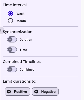 Zeitintervall: Wähle zwischen „Woche“ oder „Monat“, um die X-Achse aller Zeit-Widgets entsprechend umzuschalten.